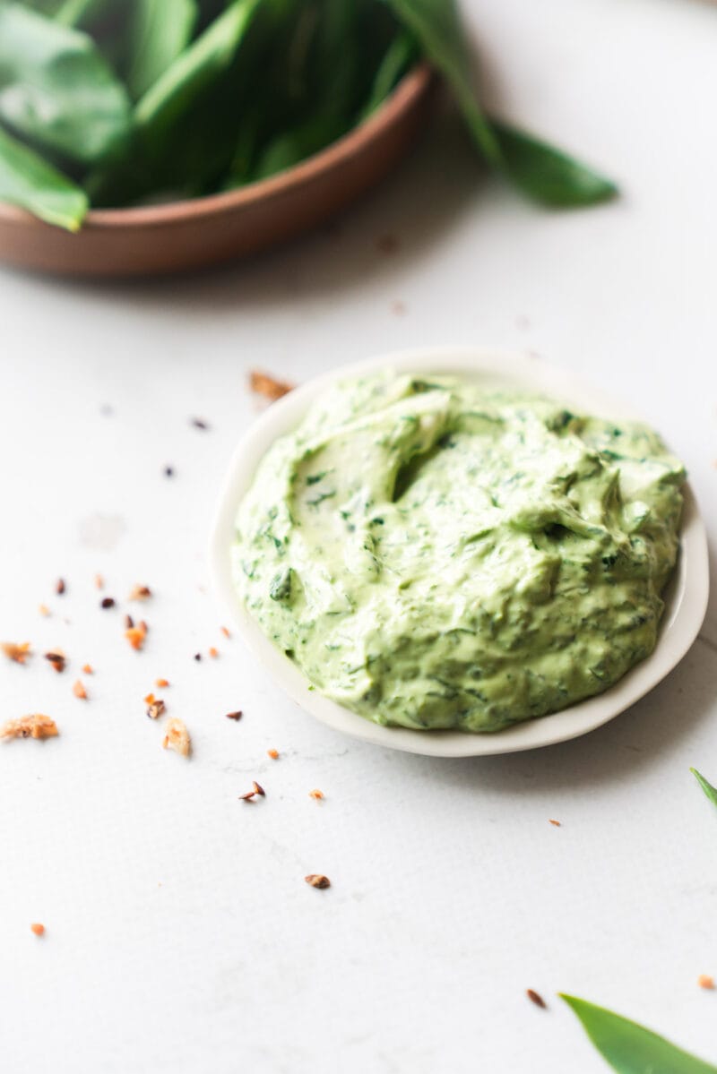 Ein cremiger Dip mit frischem Bärlauch im herrlichen Frühlingsgrün.