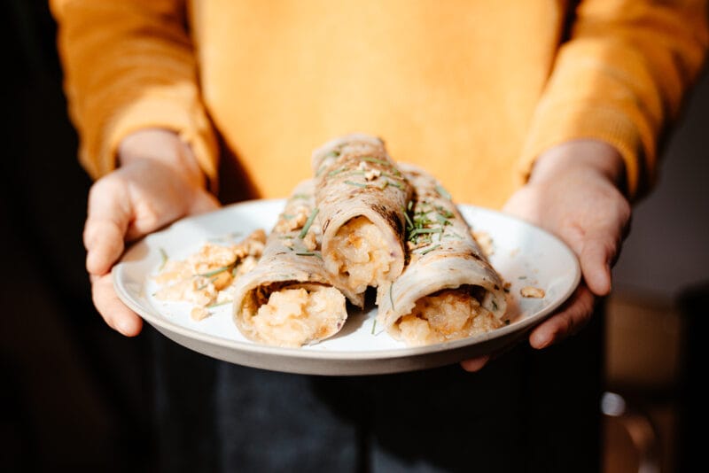 Omeletten nicht zu dick ausbacken, damit sie ganz gar werden.