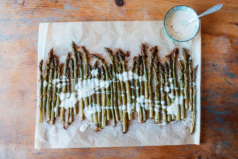 4. Je nach Dicke der Spargeln in der Mitte des Ofens für ungefähr 20 Minuten backen.